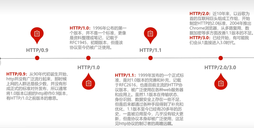 1996年,公布了HTTP的第一个版本,并记载于RFC1945(关于RFC:RFC (Request for Comments) 是由IETF(互联网工程任务组)发布的一系列技术文档。RFC文档被用于描述和规范互联网相关的协议、协议标准、过程、方法等。RFC的目的是促进对技术和协议的讨论和改进,并推动互联网的发展。被称为网络知识圣经)