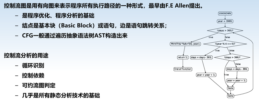 用于确定程序控制流的一项静态分析技术。控制流的表示形式就是控制流图(Control Flow Graph,CFG)。