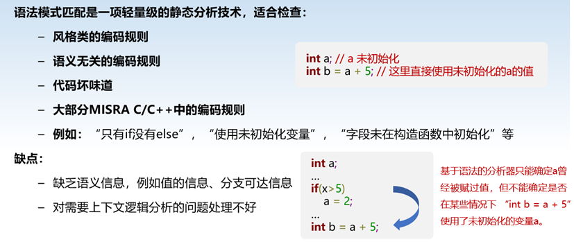 通过模式匹配在程序的抽象语法树(Abstract Syntax Tree, AST)上查找问题。