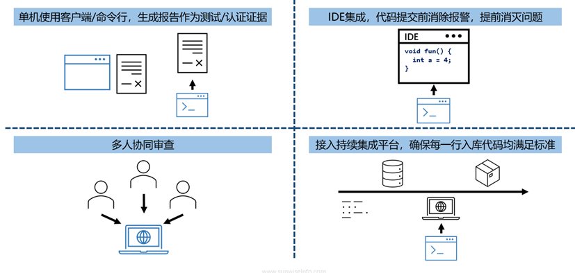 基于不同客户的工作差异,产生了对工具的多种使用场景需求,包括单机使用场景、IDE集成场景、多人协同作业场景、CICD场景等。好的工具可以同时提供多样的场景支持,以应对不同客户的差异化需求。