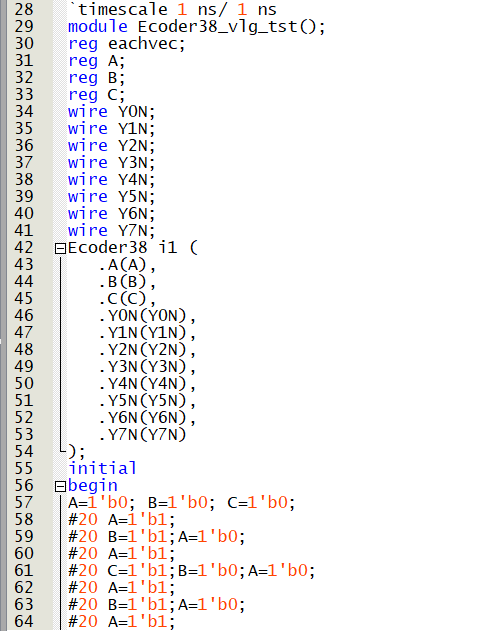 7.启动门级仿真,观察仿真结果。可看出38译码器逻辑功能正确