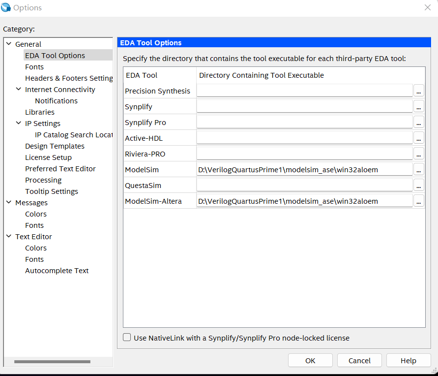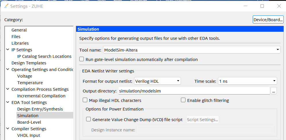4.设置仿真文件的格式和目录(在assignments>settings中)