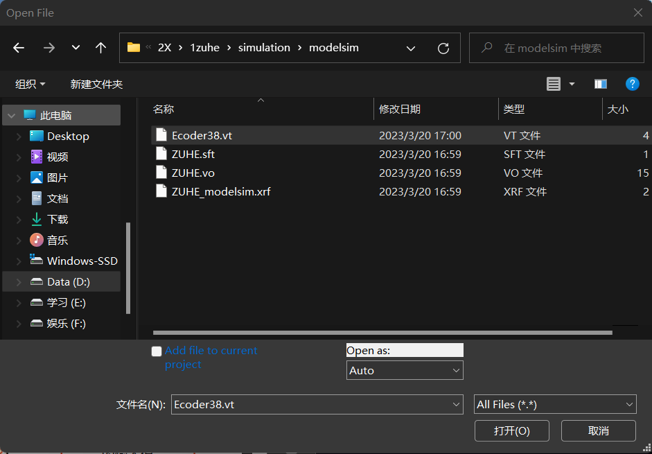6.设置导入编写的test bench代码(在assignments>settings中进行设置)