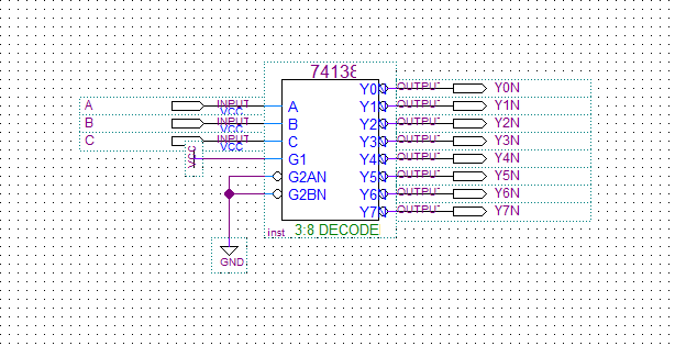 2.在原理图文件中添加38译码器,并连接对应输入输出,完成编译