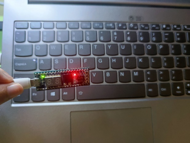 10.板上验证,拨下前三个不同开关,8个LED灯显示译码结果,结果正确