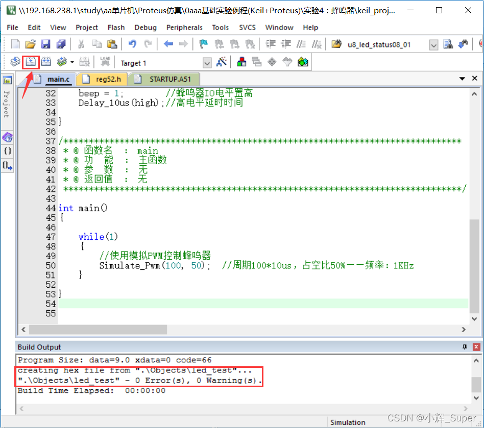 将刚生成的hex文件 烧录到单片机中,即可听到单片机蜂鸣器响了。