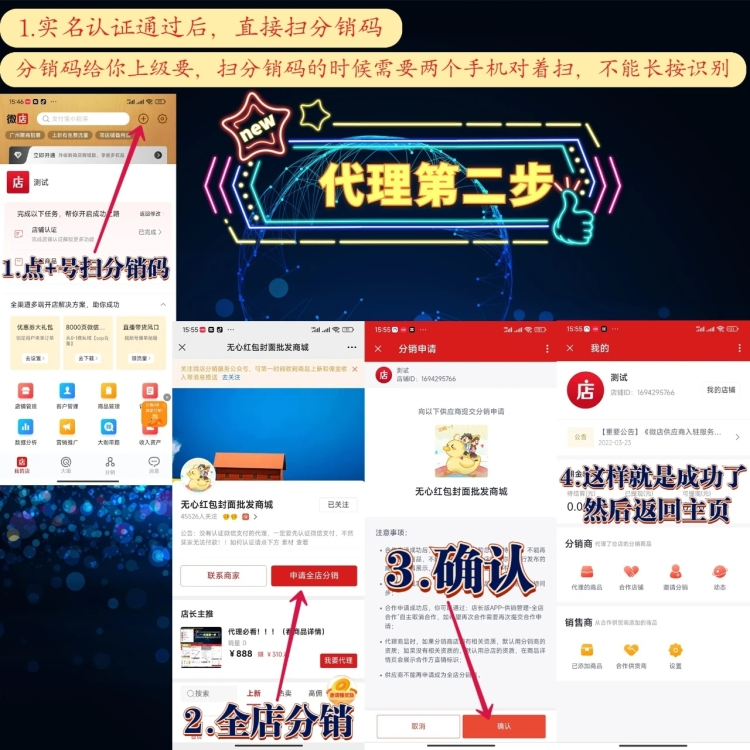 ②第二步:实名认证后需要用微店店长版app扫分销码(分销码就是下面这个二维码!!!)