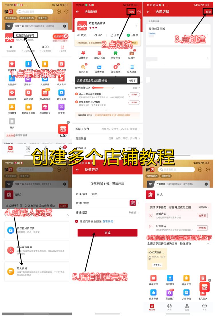 ⑨第九步创建多个微店店铺教程(一个手机号可创建三个店铺)(本步骤可选)