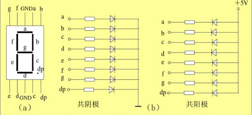 数码管想要显示相应的数据便需要有相应的段选。通过点亮不同指定序列的数码管实现不同的数字或字母显示。而数码管的段选又区分为共阴极与共阳极。数码管的段码如下图所示: