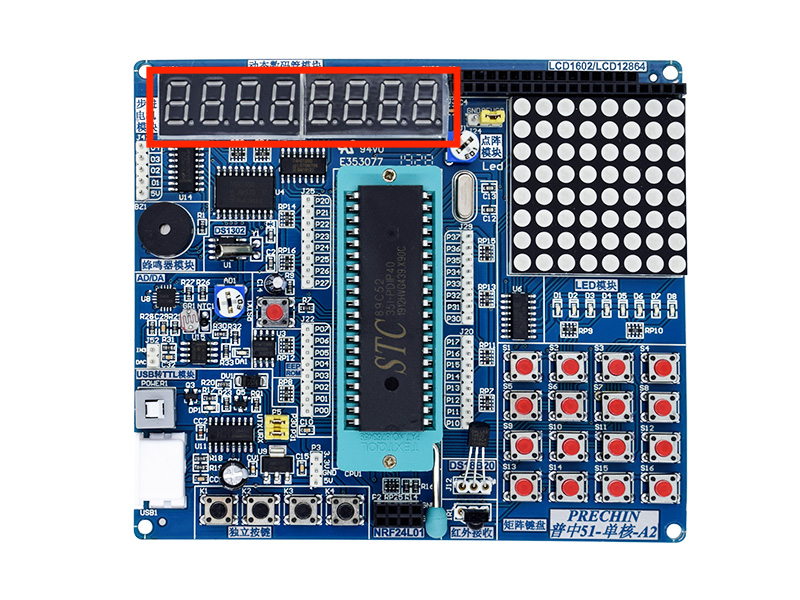 本次实验使用到的是普中51单片机实验板,完成的项目为开发板上数码管的显示,显示数据为:数字0~9与大写字母A~F。