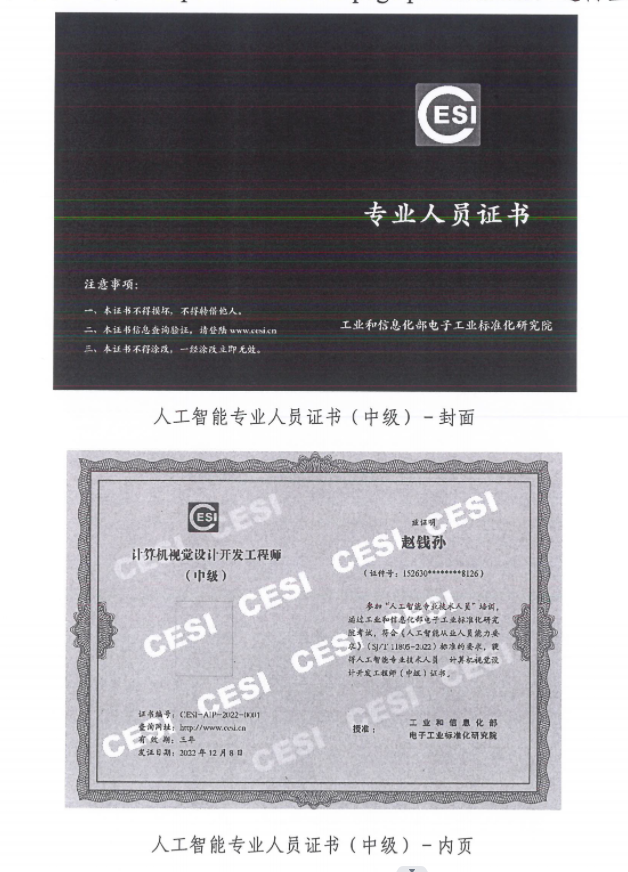 详细在工信部 工业与信息化部电子工业标准化研究院颁发的证书: