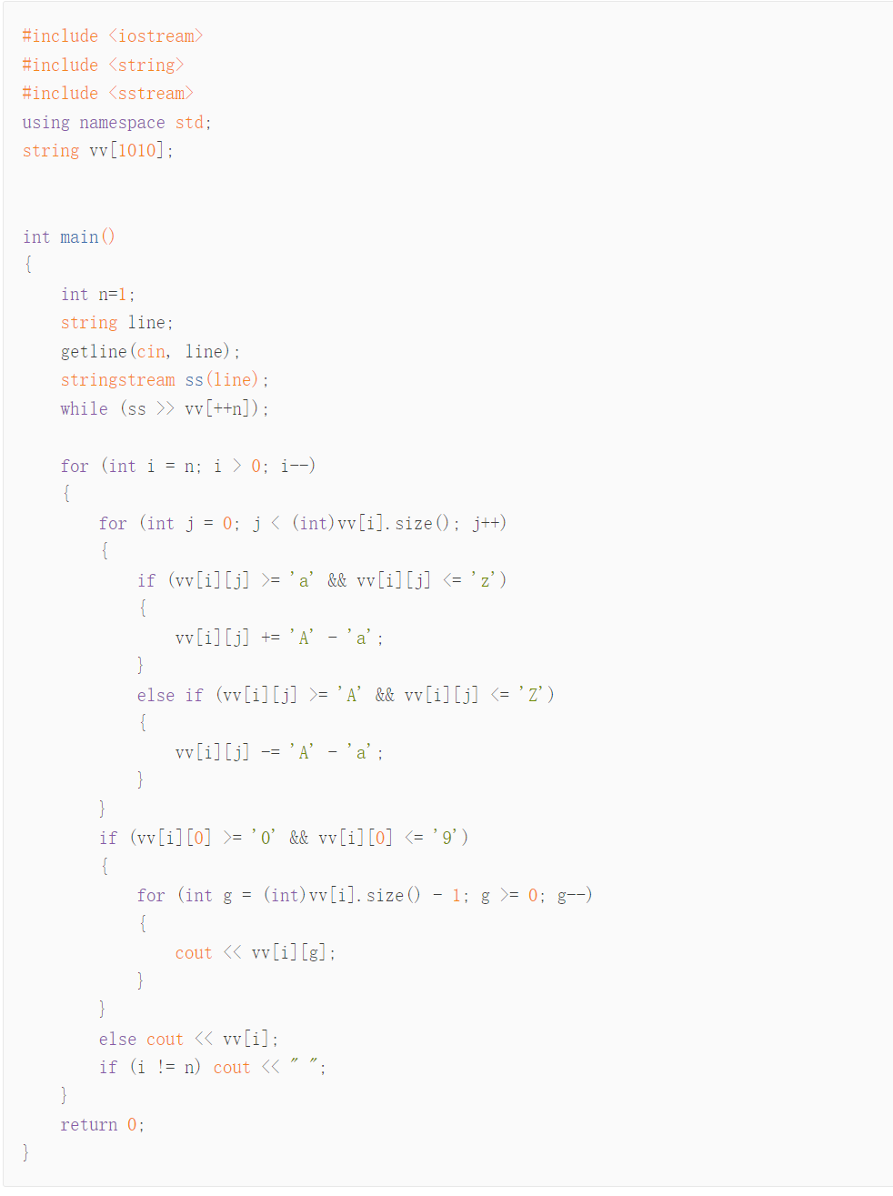 思路:利用每个字符所代表的ascii值转换大小写