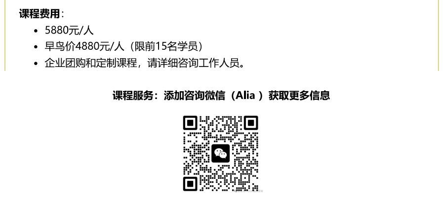 课程费用:5880元/人早鸟价4880元/人(限前15名学员)
