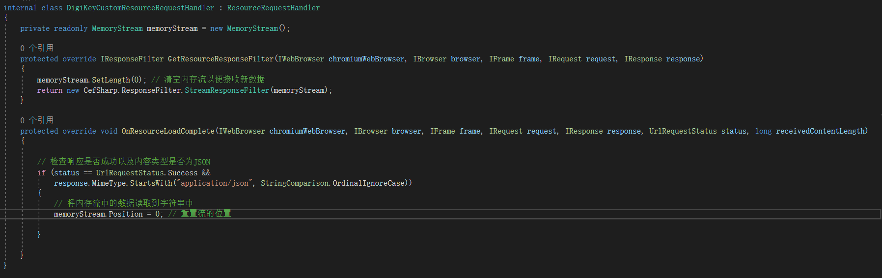 新人练手,想使用拦截器拦截wpf:ChromiumWebBrowser打开网站中的返回数据,但是一脸懵逼。