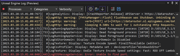 使用虚幻引擎日志查看器直接在 Visual Studio 中查看 UE 日志。