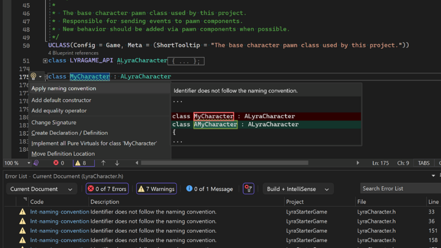 使用虚幻引擎命名约定检查器来确保您的代码符合预期。