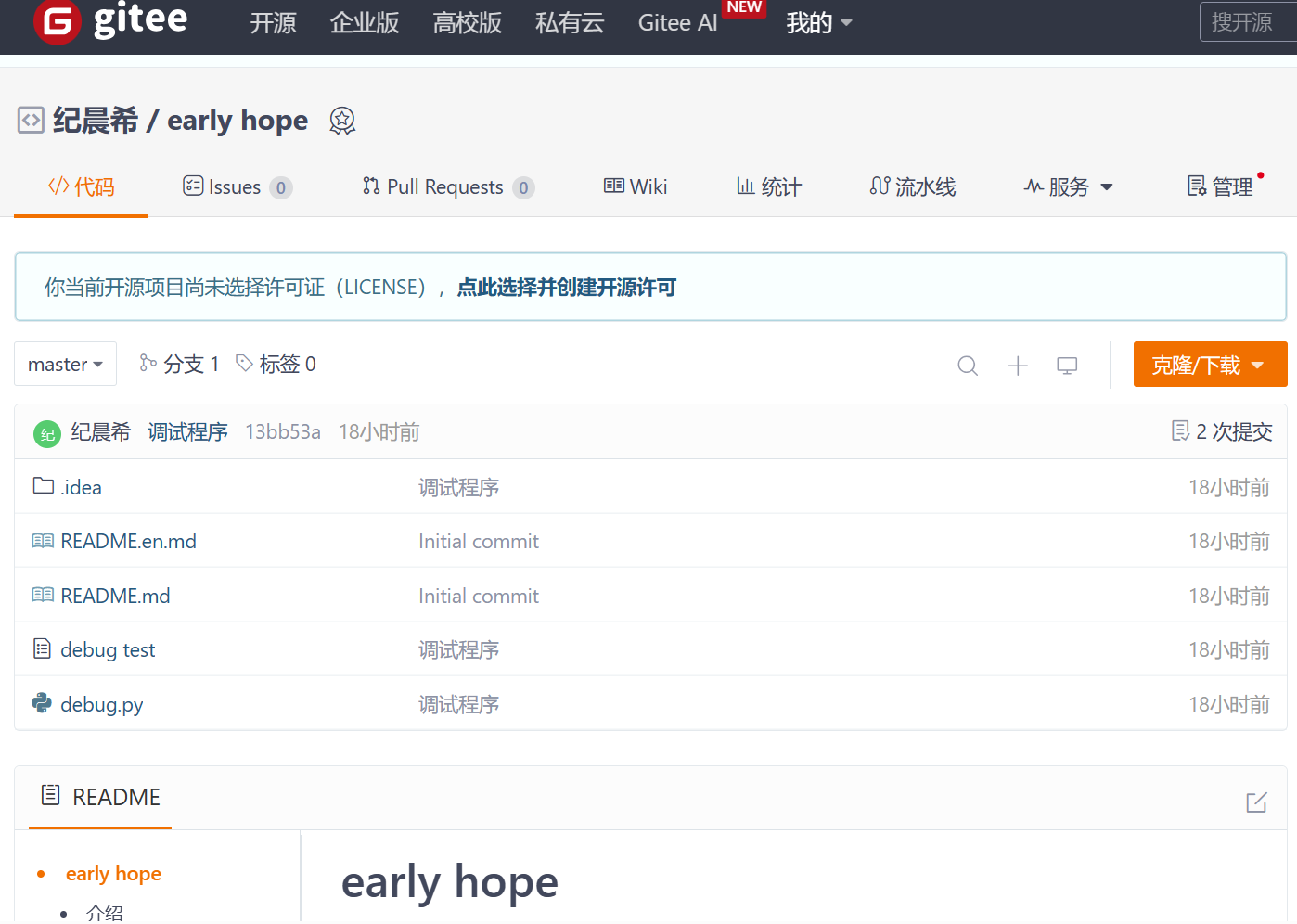 将仓库url纪晨希/early hope (gitee.com)复制到界面