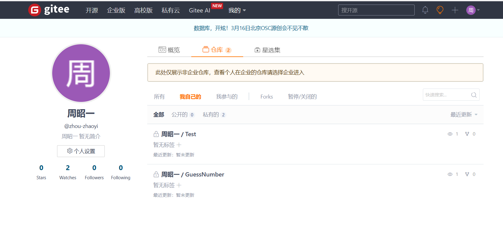 最后在Gitee栏出现我的账号,则说明添加成功。