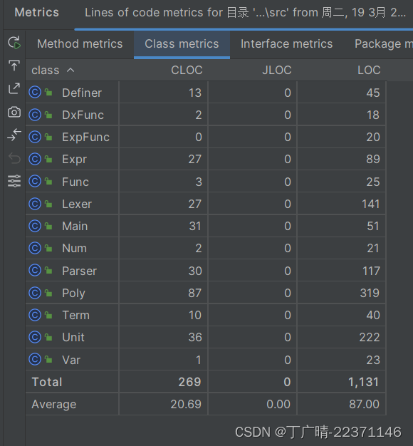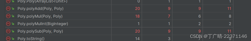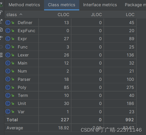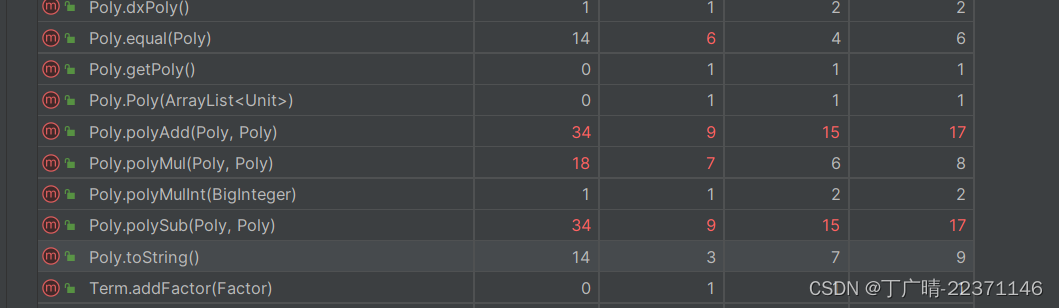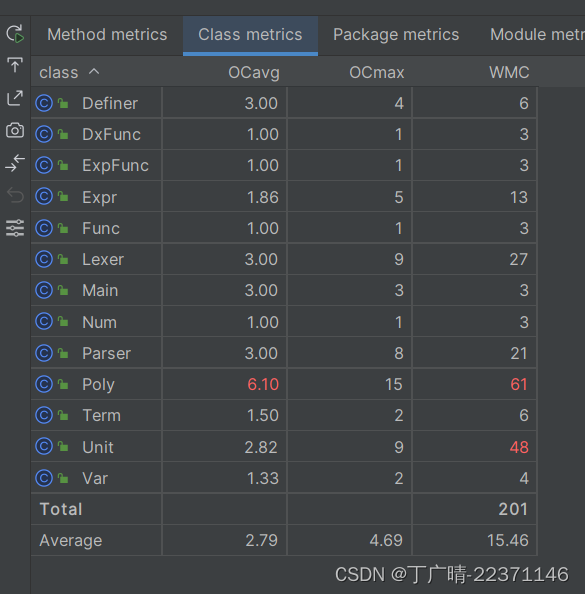 在下面的类图的复杂度分析里,我们可以看到有爆红成分,所以在这里复杂度不是可以略过的部分。主要是poly和unit复杂问题,因为我对于两者加了很多彻底的判等,clone,各种运算方法等,而且还有一些作用不大的方法没有及时删。