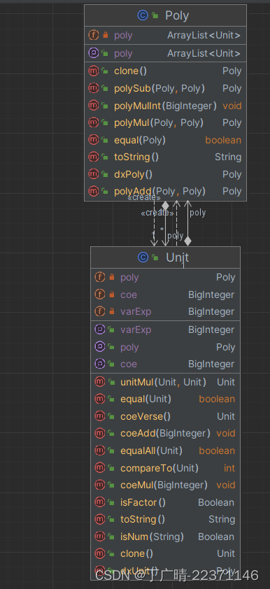 ,poly就是一个unit组成的Arraylist,也就是几个unit相加,组成数据储存部分。