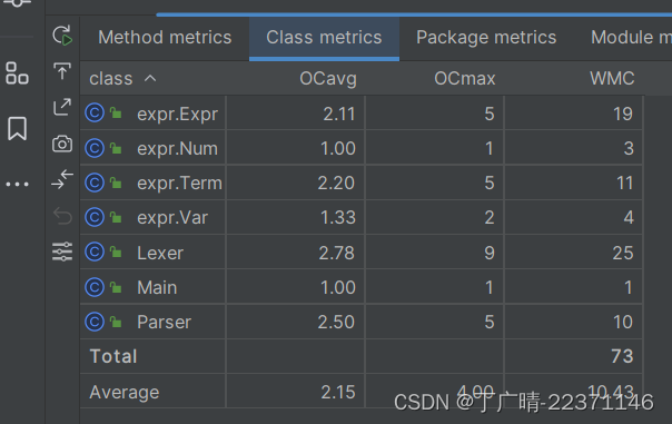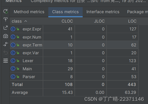 类复杂度和方法复杂度以及上面的代码规模都很小,没有复杂爆红的地方,所以第一次作业不进行过多分析。也不放方法复杂度了(方法复杂度也都很低)