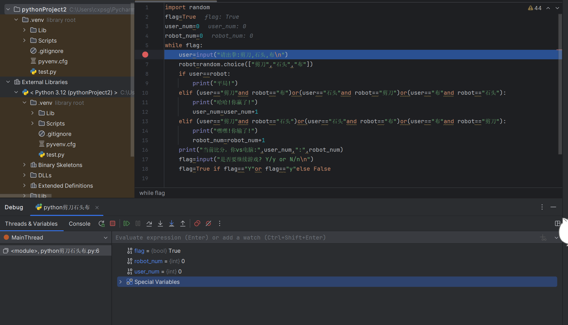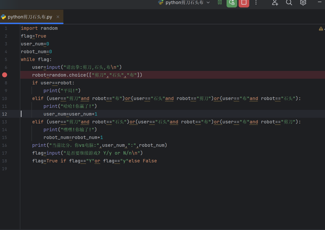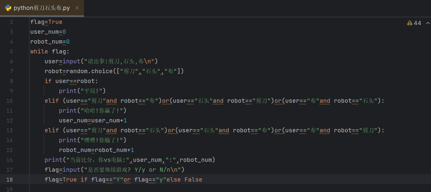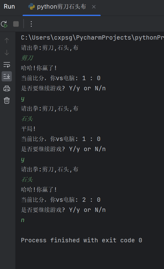 - 问题1:石头剪刀布小游戏不能连续玩,玩一把后就要重新run