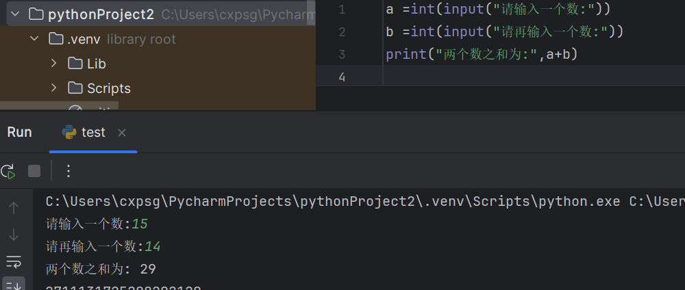 (1)先通过简单小程序熟悉Python运行:输入a与b并求值。