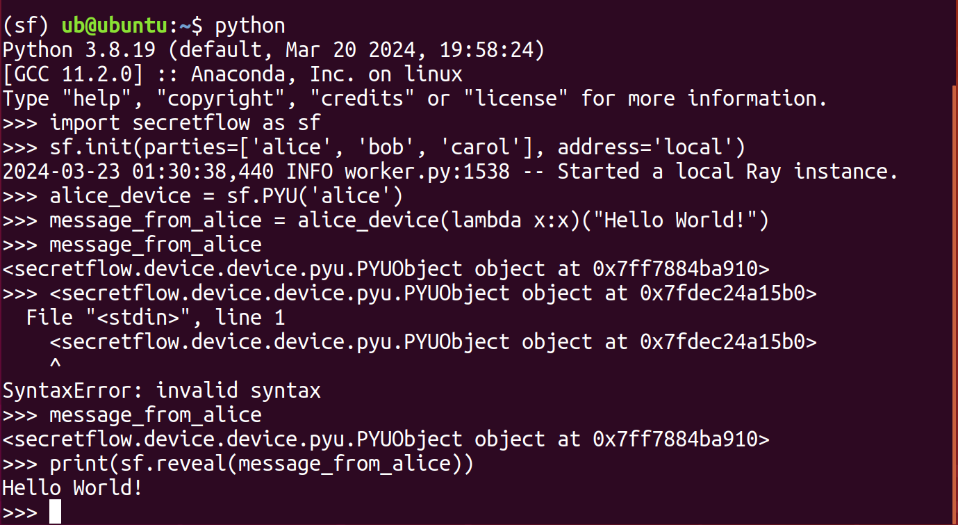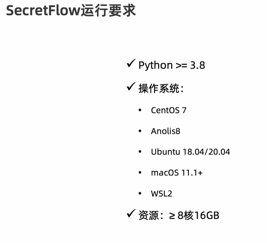 安装:https://www.secretflow.org.cn/zh-CN/docs/secretflow/v1.4.0b0/getting_started/installation