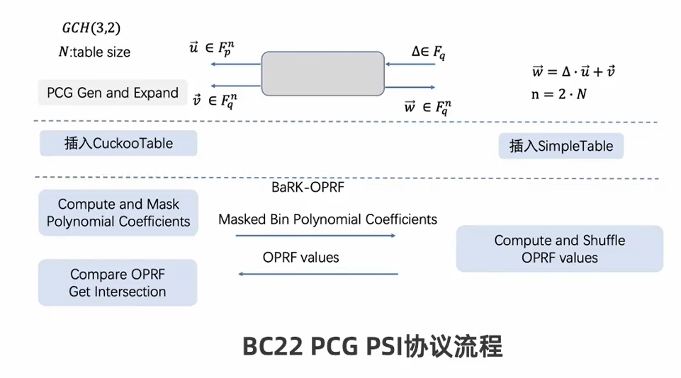 [BC22] 使用PCG加速PSI协议,减少计算量和通信量。