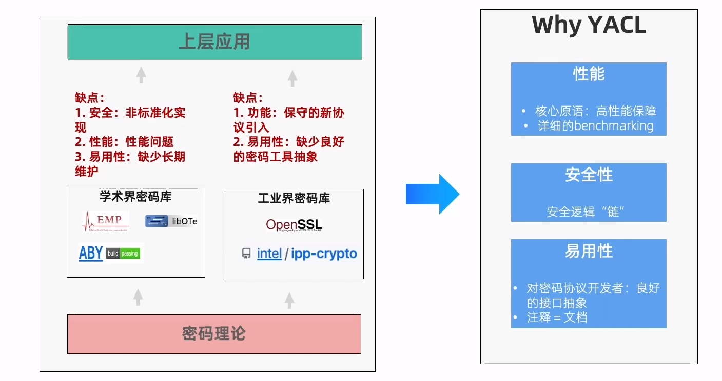 协议使用者---->>YACL---->>自身有密码基础,通过隐语密码及协议底层能力补充自身产品底层协议,优化已有平台的算法性能