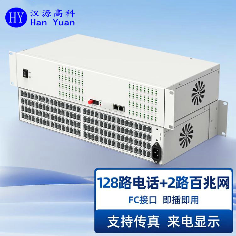 产品功能描述:在光纤上传输128路电话业务(可选配磁石电话、热线电话等)+2路百兆网络;2U机架式设备;电话接口为RJ11