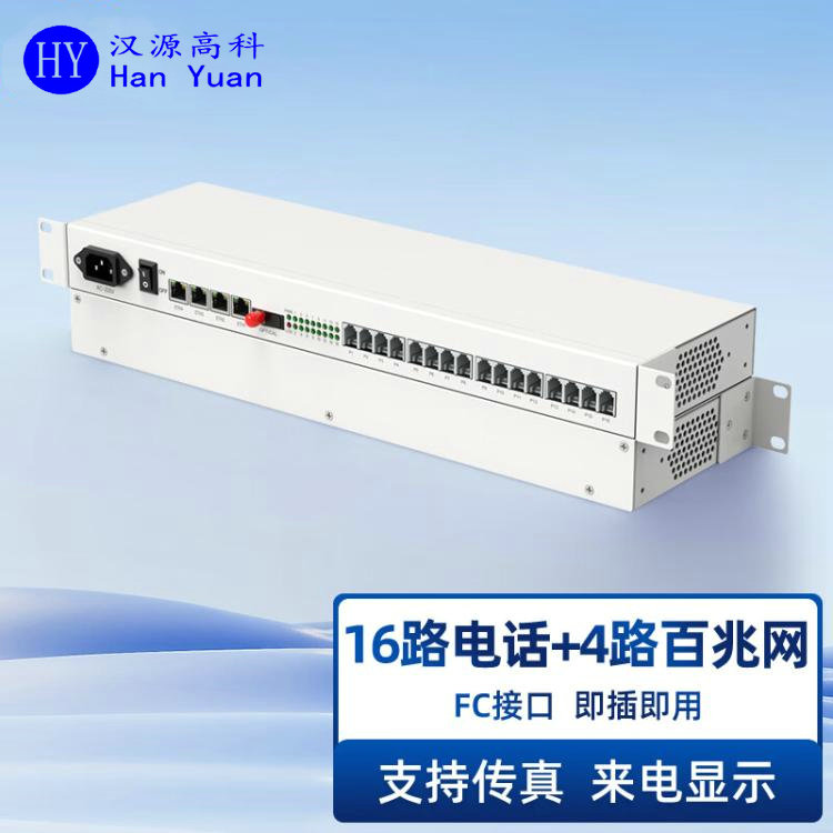 分享16路电话光端机+4路百兆网络HY-16P4FL是汉源高科(北京)科技有限公司采用自主知识产权的大规模集成电路,应用时分复用技术,将以太网信号和电话信号混合编码后在一对光纤上传输。实现热线电话业务传输,传输通道为光传输通道。该机采用1U机架式设计,集成度高,体积小,功耗低,工作可靠,安装使用方便。