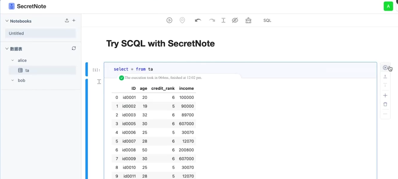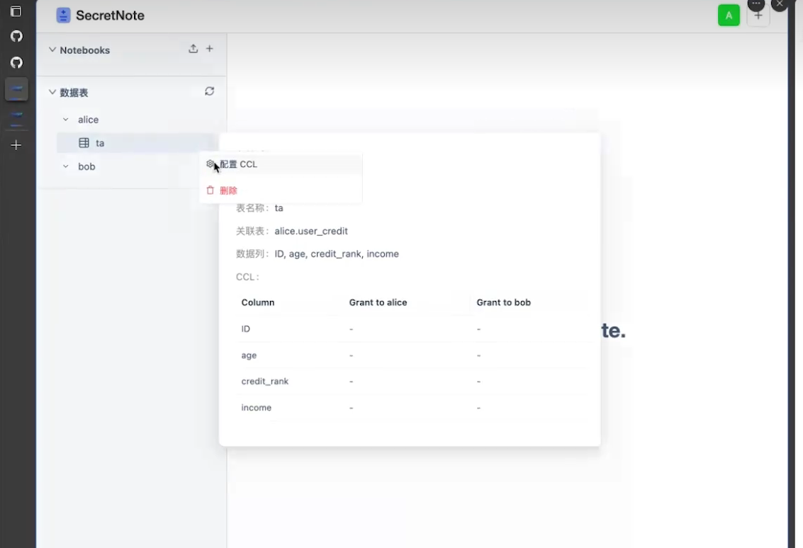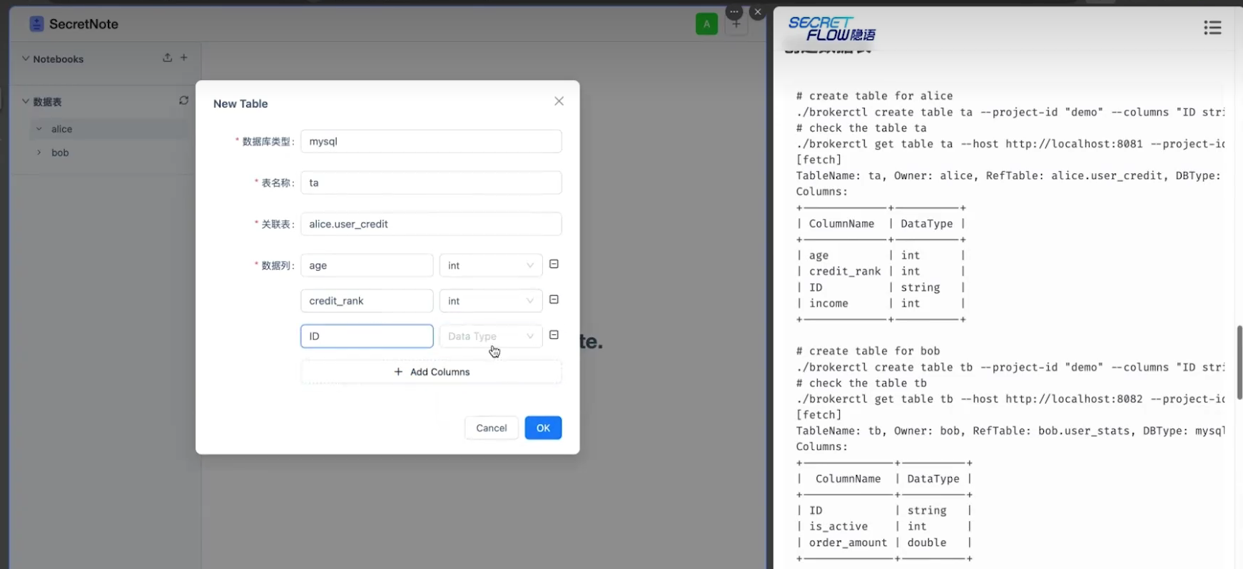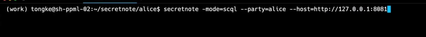 以scql模式启动secretnote(secretnote -mode=scql --party=alice --host=http://127.0.0.1:port)