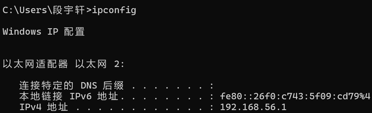 - 问题1解决方案:在命令提示符里输入ipconfig