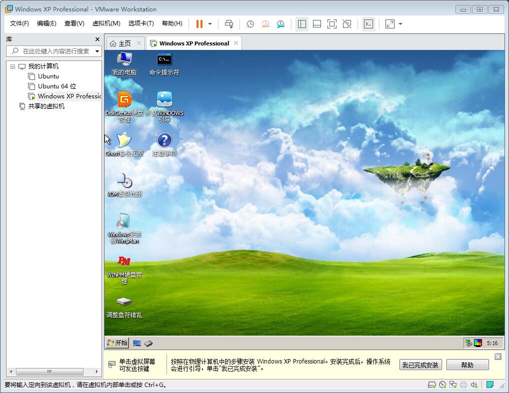 虚拟机设置为bios引导diskgen分区,设置第一个分区为主分区,并激活。加载xp的iso镜像。运行setup安装,没记错应该在i386目录里