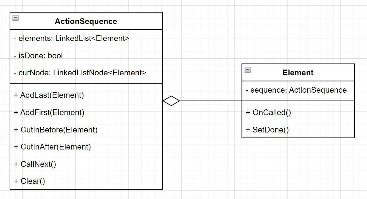 OnCalled():动作的相应逻辑。由子类重写。当ActionSequence 的 CallNext 函数被调用时,并且当前元素已经执行完毕、这个元素是下一个元素时,该函数会被调用。