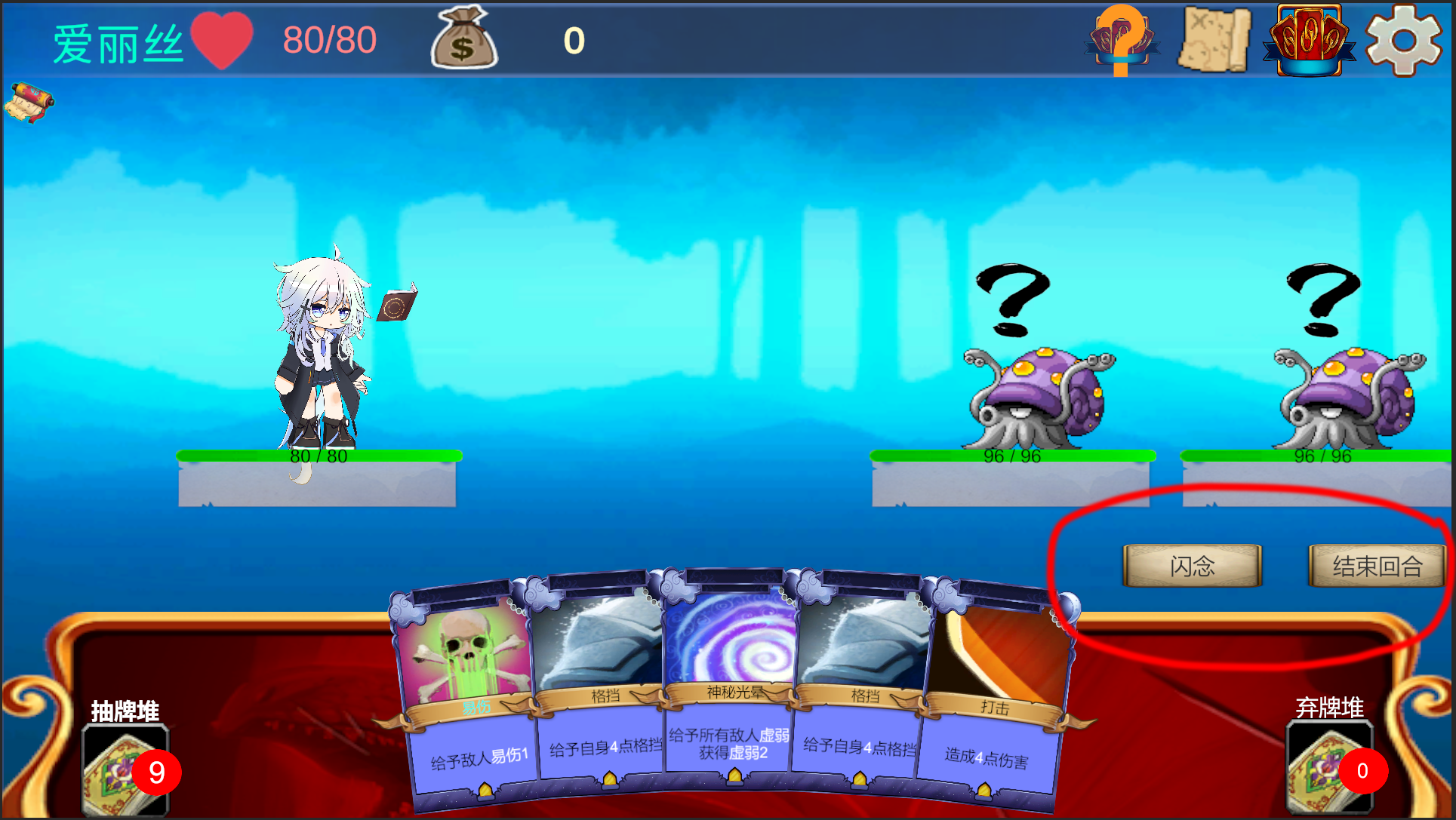现在,玩家连续快速依次点击“闪念”和“结束回合”两个按钮。