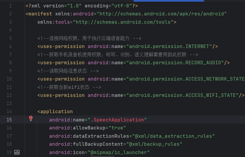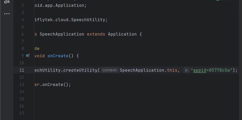 将SpeechApplication.java的代码进行调整。首先将appid更改为在科大讯飞控制台申请的appid。