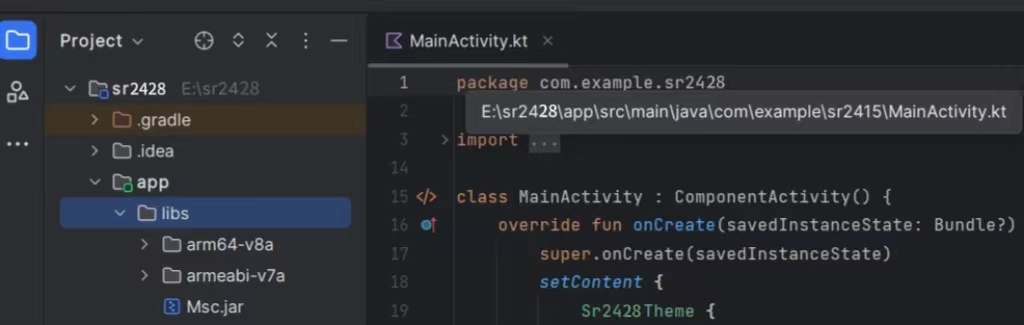 将sdk目录下lib中的文件复制到android studio中的项目,同时将Msc.jar文件add as library。