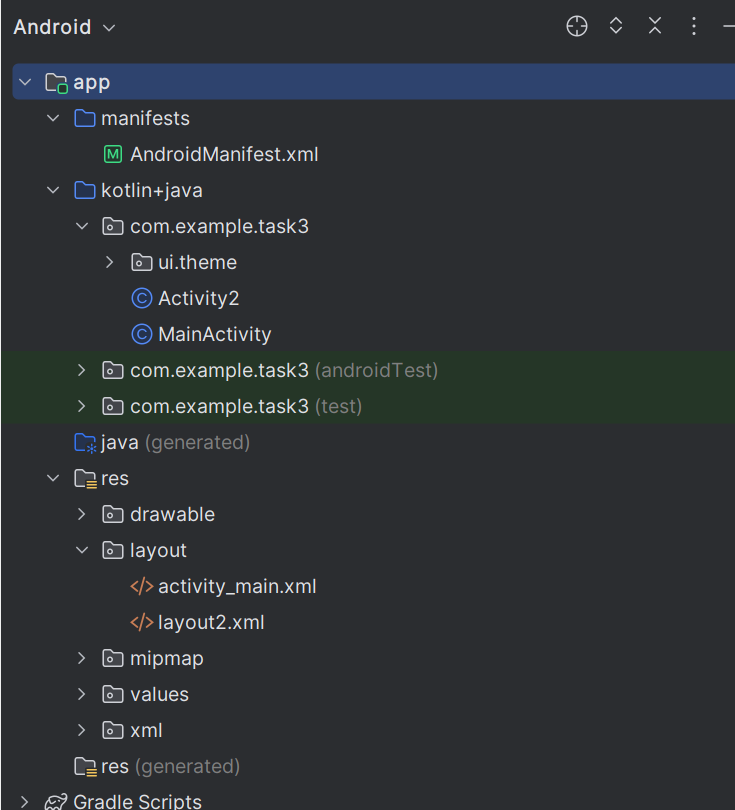 Intent intent = new Intent(MainActivity.this, Activity2.class);
