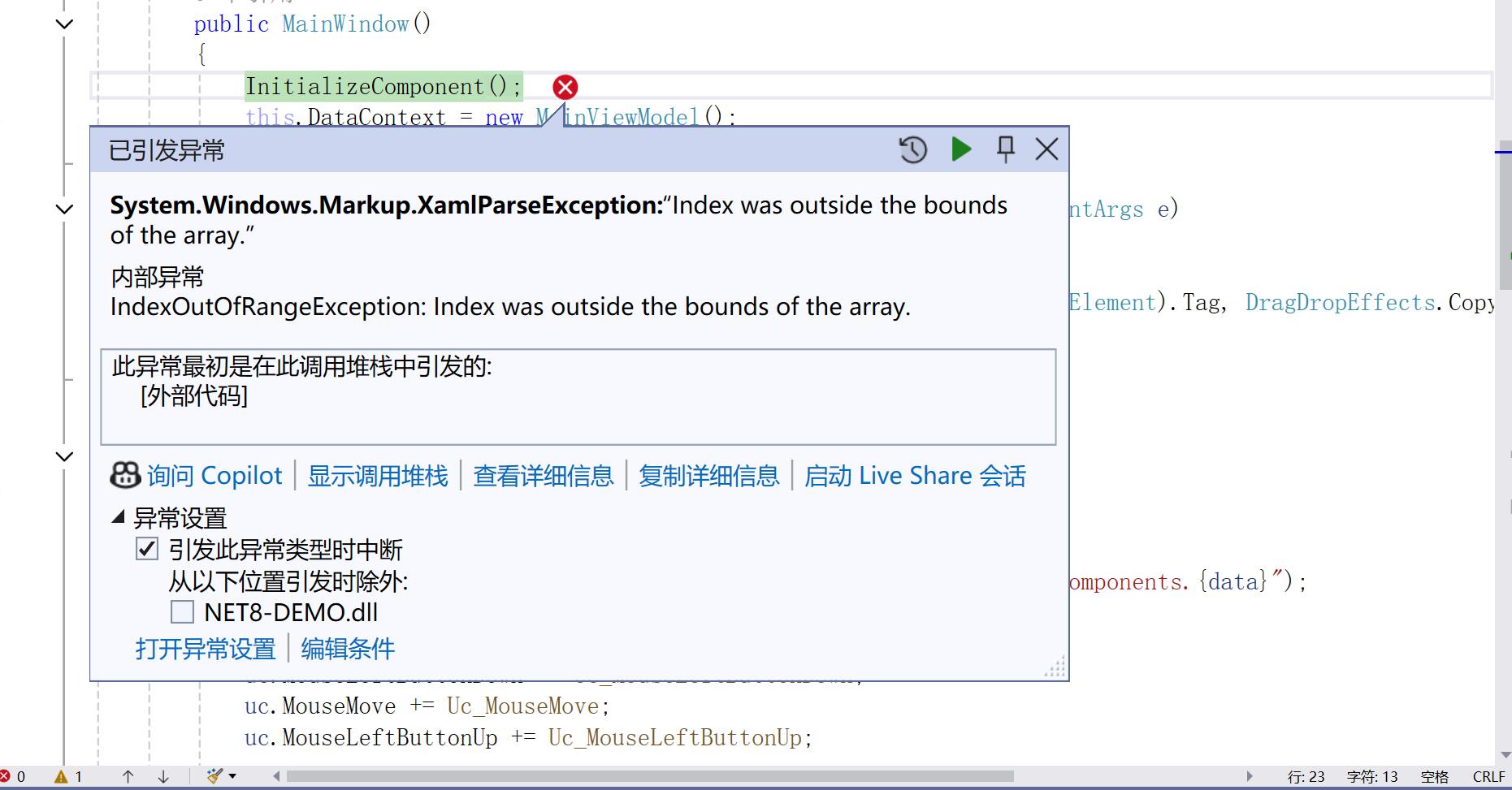 程序启动时会报错,但把第二张图中选择的内容删除就不会了,为什么
