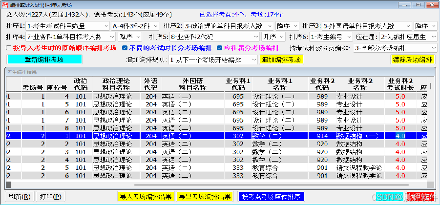 分享2025年研考,超过3小时但不超过5小时的科目调整到第4单元考试,使用“9”开头作为科目代码。如果把它们当作普通科目,混在一起编排考场,那就会有很多考场存在超时长的考生,监考员们都要坚持4、5个小时。但这种科目只是少数,让所有的监考员都工作4、5小时,浪费人力!如何根据各科目的考试时长,将不同时长的科目分开编排考场,只让极少数考场的时长为4、5小时,这是今年研考考务需要解决的问题。