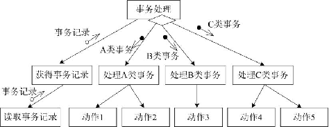 所谓事务,是指一个信号、一起事件或一组数据,它们能够在系统中引起一组处理动作。 事务中心具有分析事务类型和调度的功能,对事务起着分派和控制的作用。信息如果存在多种类型的事务处理,就必须找出事务中心和事务。如果数据流程图的某处理能够根据输人的数据流确定事务类型,而且产生了不同的操作路径,那么这个处理就可以被确定为这些事务的事务中心。