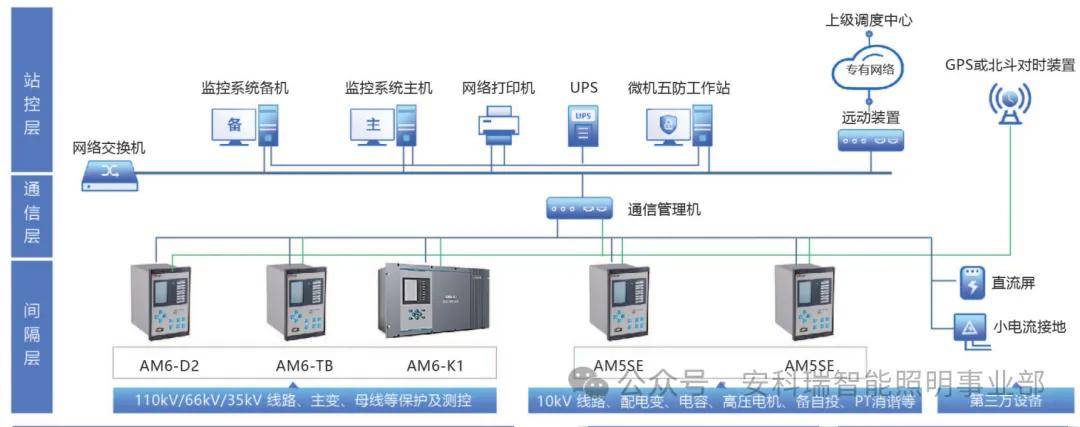 系统分为间隔层、通讯层和站控层。间隔层设备为变电站微机保护测控装置,可采用集中组屏安装,也可以分散安装在开关柜上。通讯层包含通讯管理机和网络交换机。间隔层设备接入通讯管理机,转换成以太网后上传系统,也可以通过以太网直接接入系统。站控层包括工程师站、操作员站等,是变电站人机接口,用于实时显示变电站遥测、遥信数据,并提供遥控、遥调、报表、告警等功能。