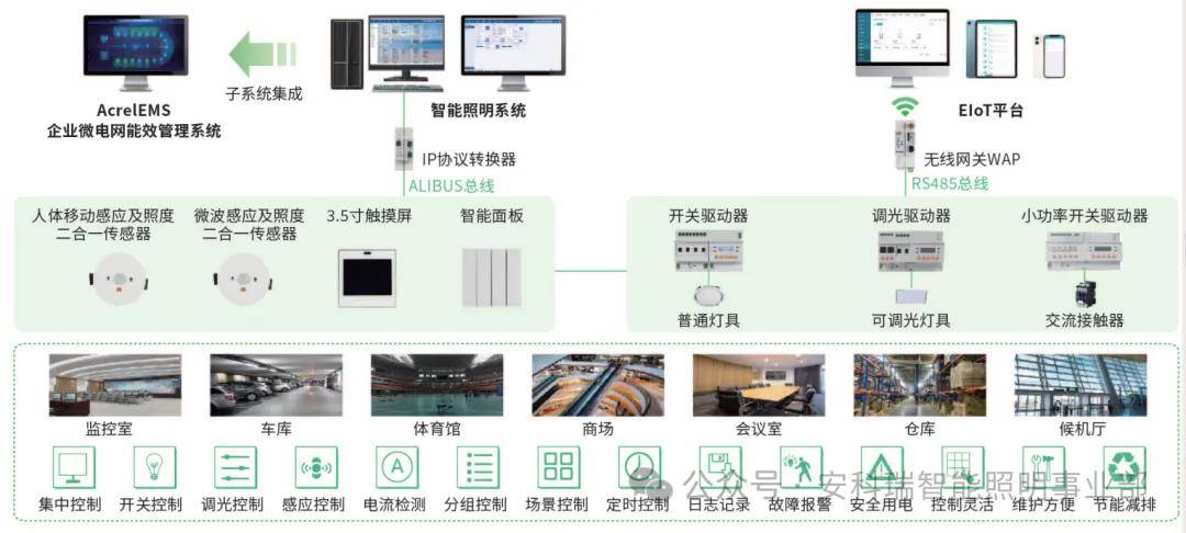 ALIBUS智能照明产品采用RS485总线技术,技术成熟可靠,安全稳定。开关驱动器具备独立工作的能力,模块化设计,可以任意拼接扩展,同时预留1/0口以及Modbus接口,还可以满足与AcreIEMS企业微电网能效管理平台进行数据交换,适合于各类商业办公建筑、医院、学校、酒店,以及体育场所、机场、隧道、车站等项目的照明控制需求。