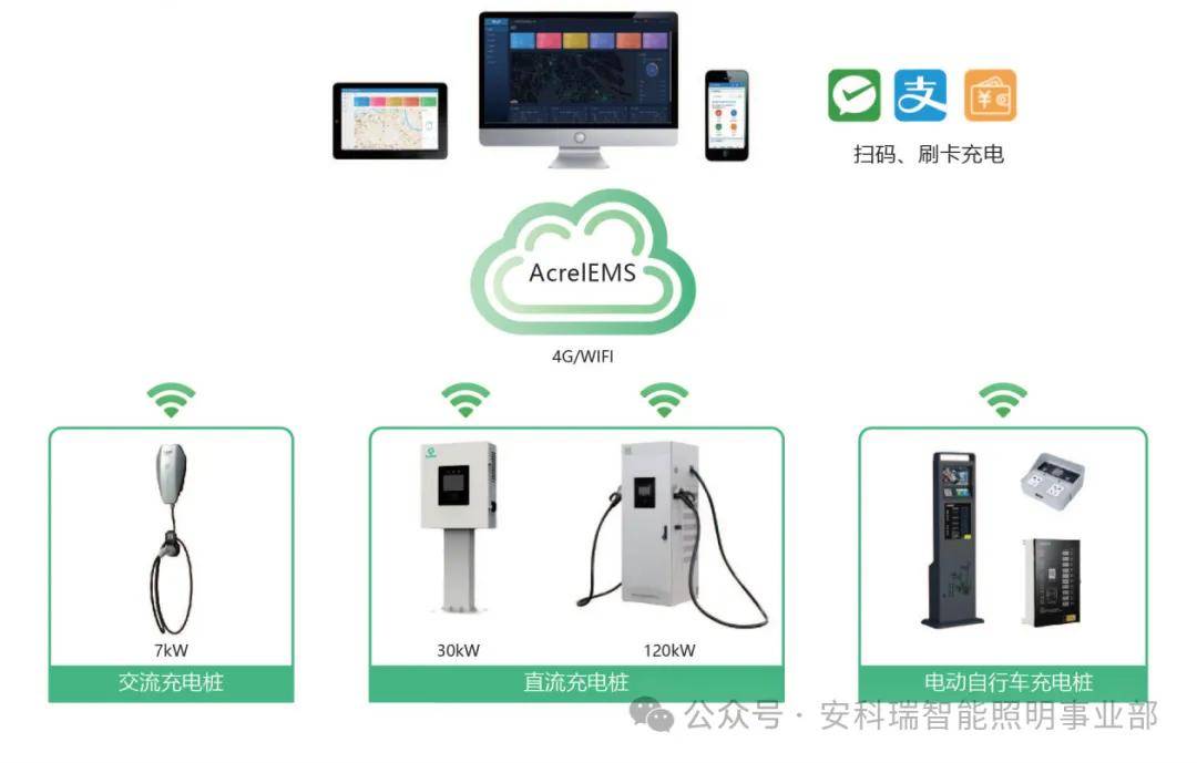 安科瑞充电桩运营管理解决方案为用户提供交直流充电桩、电动自行车以及充电桩运营管理平台解决方案,汽车充电桩包括7kW交流充电桩、30/60/80/120/160kW直流充电桩,来满足新能源汽车快速发展,智能运营管理的市场需求。充电运营管理平台包括充电交易管理和运维管理,可以帮助用户享受高效便捷的充电服务,微信小程序、微信公众号、支付宝小程序、支付宝服务窗等,充电方式多样化,充电计费可以选择计时、计电度、计金额方式,同时系统会根据供配电系统以及变压器负荷率来动态控制和调整充电功率,避免过负荷,提高供电系统稳定性。