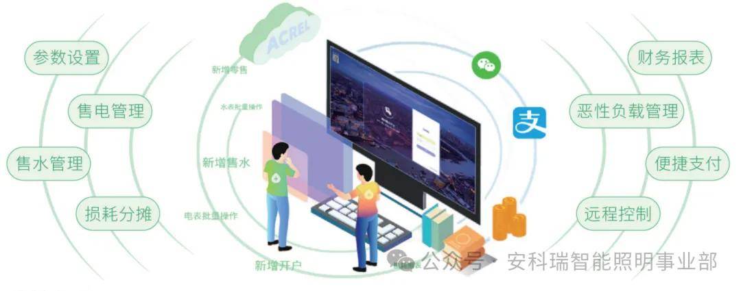 综合计费管理系统帮助转供电主体向租户收取电费和水费,包括远程抄表、费用统计、损耗公摊、公耗分摊、财务报表等,协助转供电主体更高效的解决电费水费收取难题。综合计费管理系统主要包含预付费电表、阀控水表、智能网关和计费管理软件组成。系统主要完成费控电表/水表参数设置,商户售电/售水管理、损耗分摊及能耗统计工作,适用于商业广场、学生公寓、工业园区和办公楼宇等。