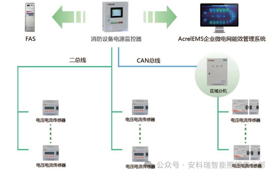 AFPM系列消防设备电源监控系统能够对消防设备的电源进行实时监控,通过检测消防设备电源的电压、电流、开关状态等数据,从而判断设备电源是否有过压、欠压、错相以及过流(过载)等故障信息并实时报警、记录的监控系统。系统可实时反映出被监控设备电源的状况,并集中显示,从而可以有效避免在火灾发生时,消防设备由于电源故障而无法正常工作的危急情况,保障消防联动系统的可靠性。根据用户的需求,系统可以满足与AcrelEMS企业微电网能效管理平台或火灾自动报警系统等进行数据交换和共享。