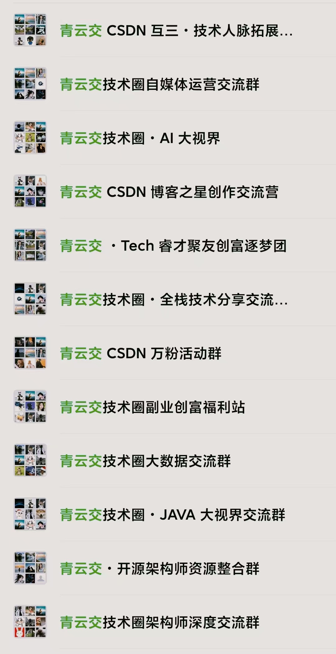 👥 青云交灵犀技韵交响盛汇 - 交流群:专为 CSDN 博主打造,不仅有写作技巧分享会,还有资深博主指导,助力你打造爆款技术博客,提升在技术社区的知名度与影响力。 💡