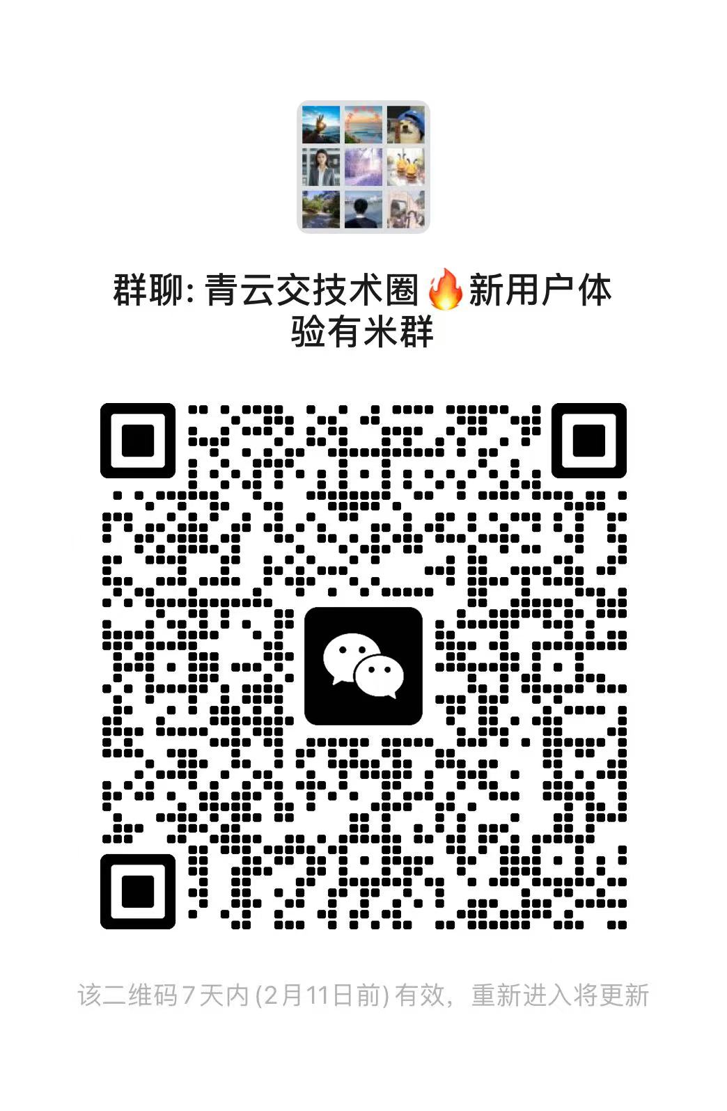 过期请加微信号:QingYunJiao 拉您入群!注意写明:技术分享交流 + 姓名 + 城市 + 技术栈